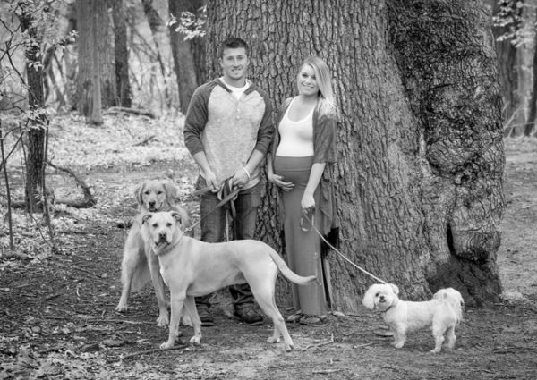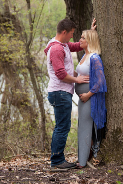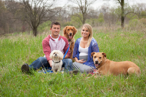 The Asylum Nature Preserve off Drake in Kalamazoo has a nice little trail loop and many people bring their dogs here for a walk. Caley and Sean, along with their three lovable pooches, met me there for maternity pictures. The dogs were excited to be in the park so we were all very happy to get a few shots of them looking at the camera, especially with all the other dogs out on this beautiful spring day. Caley is an adorable mom to be, with the cutest little baby bump And Sean was so patient and attentive to Caley. Congratulations, Sean, Caley!