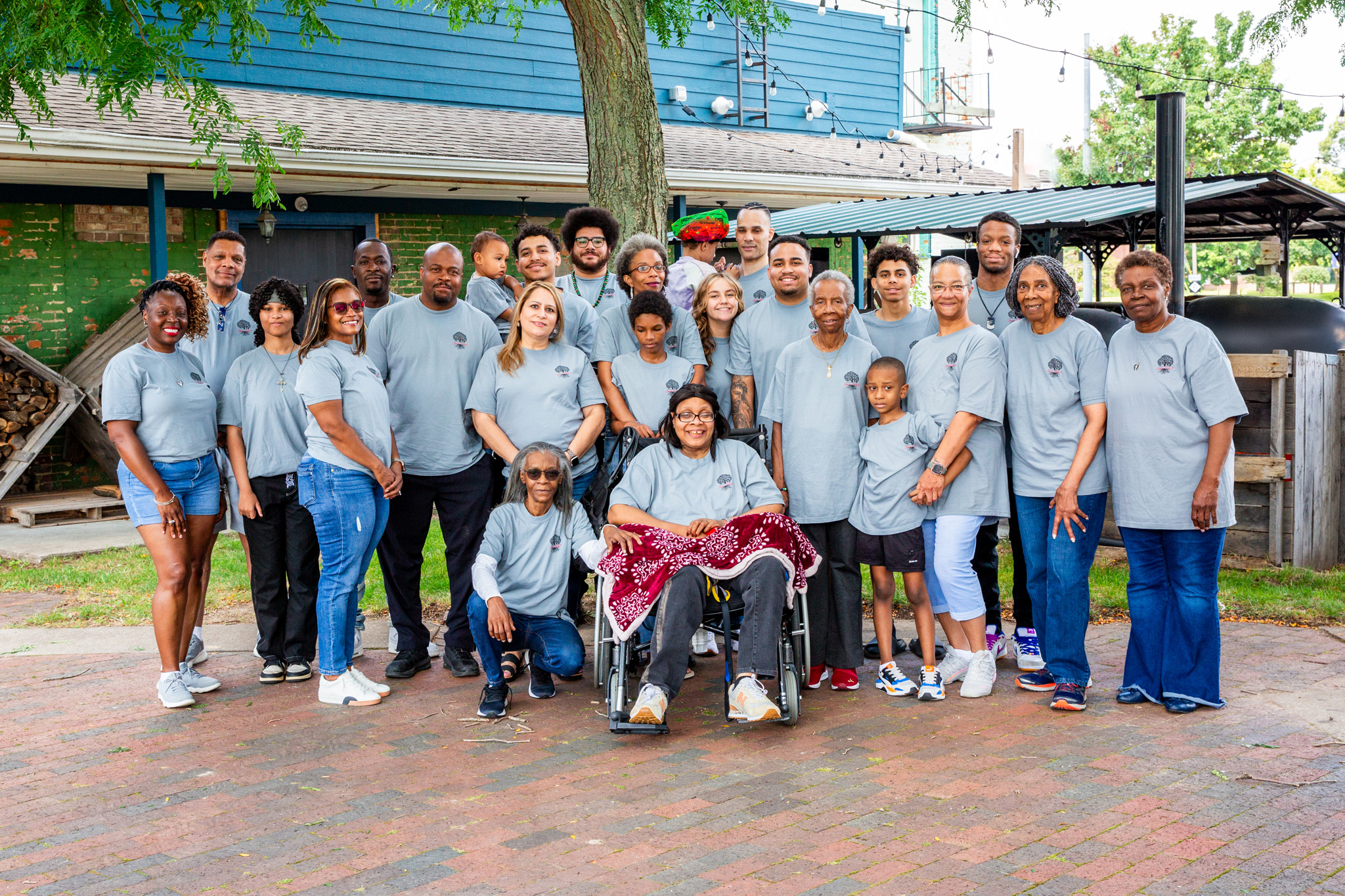 Imogene, cousin, daughter, mother, PARTY PLANNER, organized a family reunion. They met at the Oak and Ash BBQ downtown Dowagiac, much of the family traveling from a distance. The family willingly made the long trip to honor a very special family member. Cynthia, who can’t travel easily, having Multiple Sclerosis, was the guest of honor. The day was made more special because many had not seen each other for a while. Everyone received a Doyle Family Reunion t-shirt, worn during the reunion. The entire family was wonderful about having their picture taken and many memorable images were made. After taking a few shots of the group outside of the restaurant, we moved inside to a reserved room. The family enjoyed the delicious BBQ served up by the Oak and Ash. It was a fabulous celebration of a lovely and caring family.