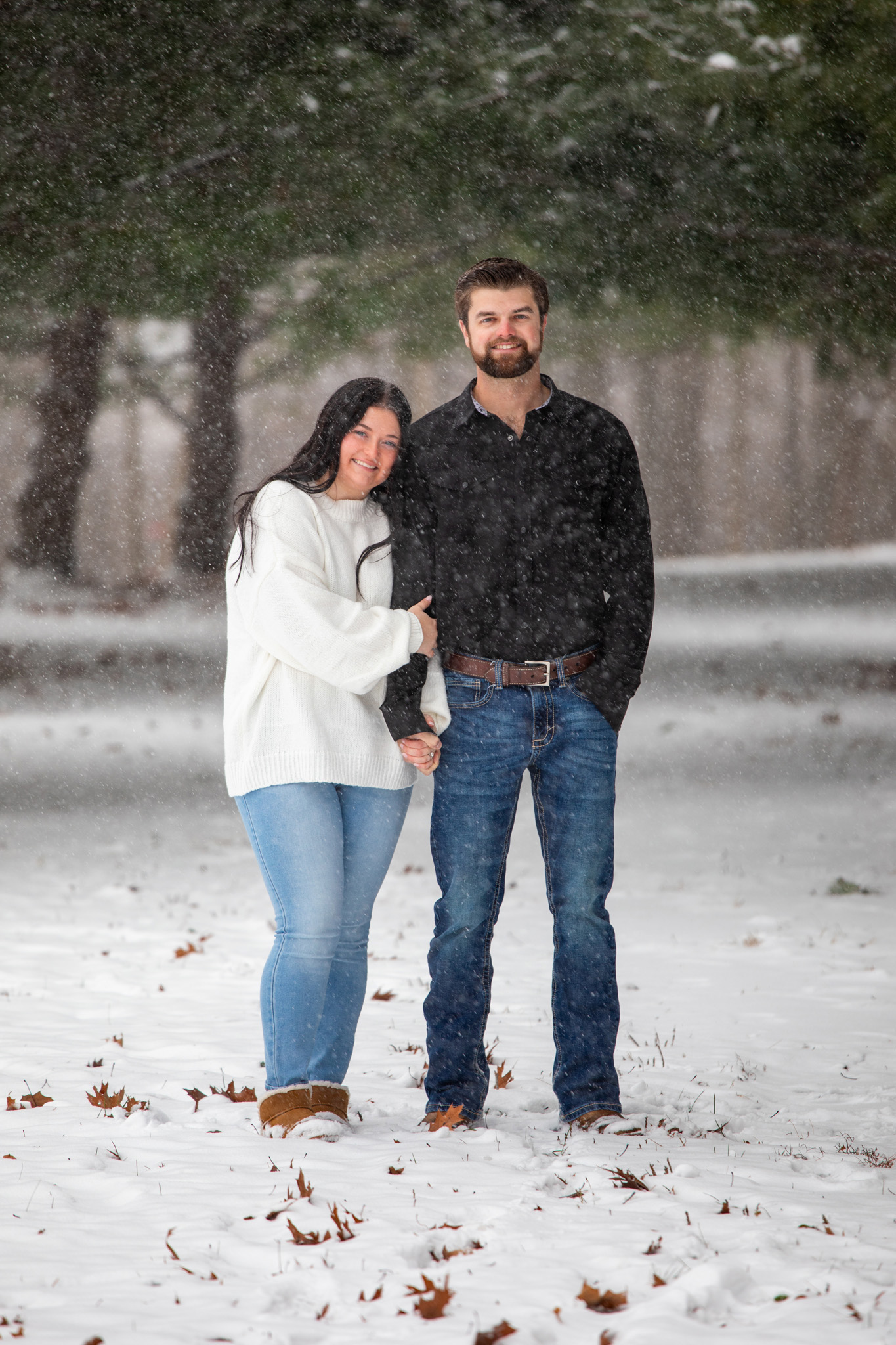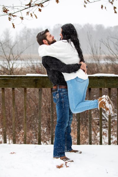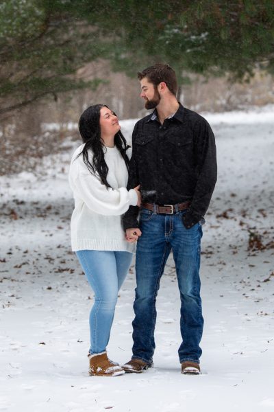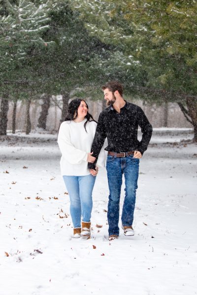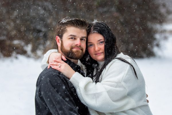 Weather can be a problem when scheduling an outdoor session. Although we would have liked some sunshine, we instead got fresh snowfall during out shoot. This sweet couple stoically tolerated the cold temperatures and luckily they did! We ended up with some beautiful photos. Can’t wait to see the wedding pictures!