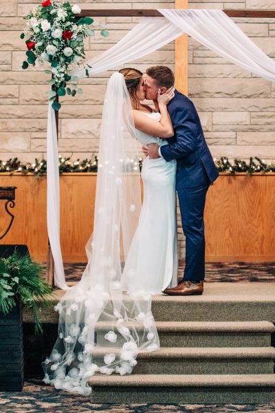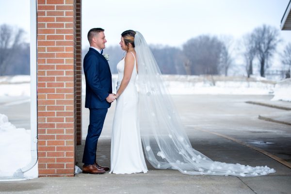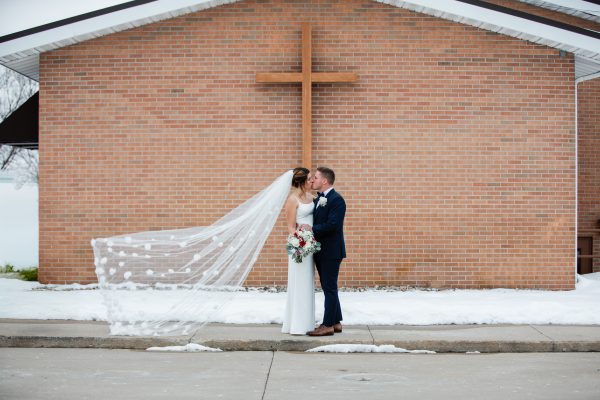 Marissa and Norman met at a gym and fell madly in love. After a brief engagement, Marissa and Norman traveled from their home in Pennsylvania to have a small wedding ceremony with Norman’s Amish family in Indiana. Traveling along with them were Marissa’s parents and her friends. With snow on the ground, the couple were married inside a small church in Shipshewana.